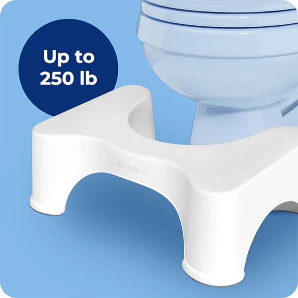Our easy-to-clean toilet stool with foot grips is designed for squatting when you poop. It is not to be used as a step. The idea is to reduce strain and put your body in a natural squat position to unkink your colon. This toilet stool is ready to withstand daily use. Are you ready to shorten bathroom visits with a squat?