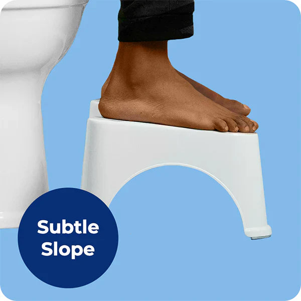 Just gotta go? We feel you. This 7β toilet stool is ready to support your feet and legs while you poop. It repositions your body to make pooping easier. There are no nuts, bolts or difficult instructions involved since it is one piece. Just slide it under the toilet bowl, have a seat, position your feet, then go!
