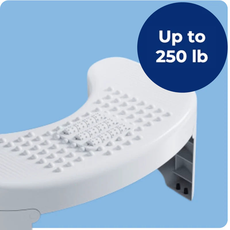 Our easy-to-clean toilet stool with foot grips is designed for squatting when you poop. It is not to be used as a step. The idea is to reduce strain and put your body in a natural squat position to unkink your colon. This toilet stool is ready to withstand daily use. Are you ready to shorten bathroom visits with a squat?